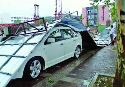 大風(fēng)吹倒南京護(hù)欄網(wǎng)圍擋砸車